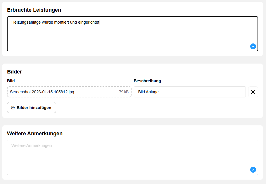 Als Handwerker entstehen wichtige Informationen nicht am Schreibtisch, sondern auf der Baustelle und beim Kunden. Genau dafür ist plancraft gemacht. Über die mobile App halten Sie Zeiten, Leistungen, Aufmaße, Fotos und Notizen direkt fest, während gearbeitet wird. In der Handwerkersoftware sehen Sie im Büro anschließend sofort, was passiert ist, wie weit der Auftrag ist und wo es weitergeht. Arbeitsberichte können direkt auf der Baustelle vom Kunden in der plancraft App unterschrieben werden, das sorgt für Klarheit und vermeidet Diskussionen im Nachgang.