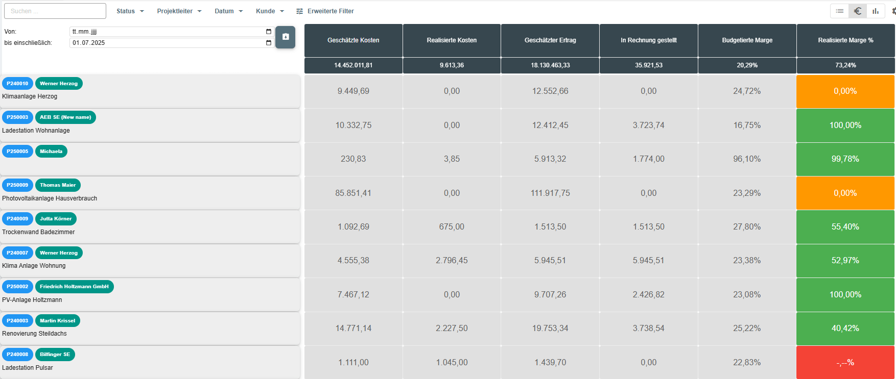 - Nachkalkulation: Kosten und Gewinn pro Projekt auswerten