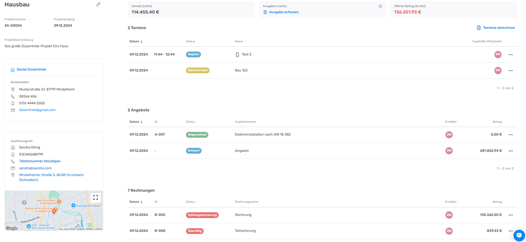 Zusätzlich behalten Sie Kennzahlen im Blick: Umsätze, offene Angebote, Zahlungen und Außenstände lassen sich übersichtlich in der Handwerkersoftware einsehen. Sie erkennen frühzeitig, welche Projekte gut laufen und wo Handlungsbedarf besteht, ohne zusätzliche Listen oder manuelle Auswertungen.